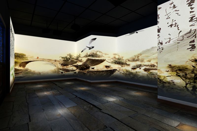 我们通过声光电多媒体手段的广泛应用,辅以中式风格的装饰营造整体氛围,